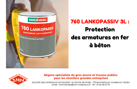 Optimisez la durabilité de vos réparations béton avec LANKOPASSIV 3L, spécialement conçu pour la passivation des armatures avant l’application des mortiers hydrauliques, notamment ceux de la gamme Lankorep.