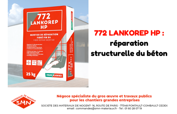 Retrouvez à la Société des Matériaux de Nogent le mortier fin 772 LANKOREP HP 25 kg, spécialement conçu pour la réparation structurelle des bétons sur tous types de bâtiments, ouvrages d’art et travaux de génie civil.
