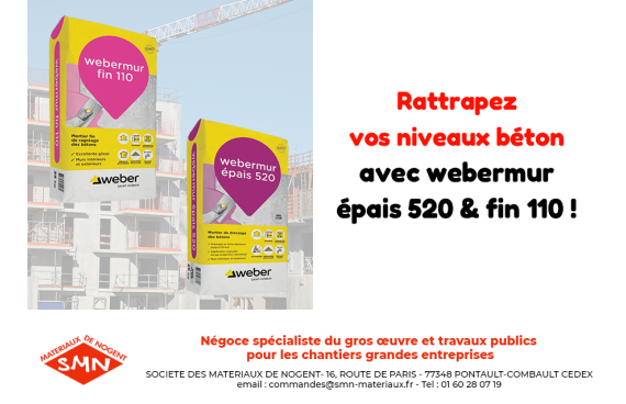 Avec la Société des Matériaux de Nogent, équipez-vous des enduits de ragréage Weber : épais 520 pour gros volumes (5-20 mm) et fin 110 pour finitions lisses, sur béton banché et blocs de béton.
